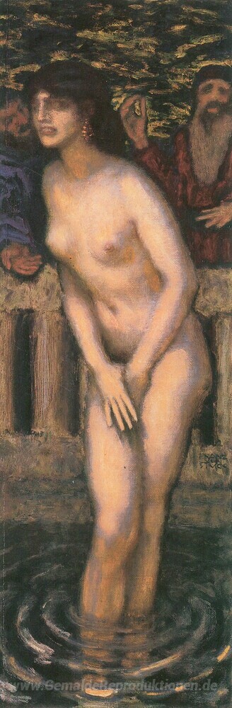 Wir bieten Ihnen eine handgefertigte Reproduktion auf Leinwand des berühmten Kunstwerks 'Susanna und die Ältesten' von Franz Stuck, aus dem Reproduktionsmuseum.