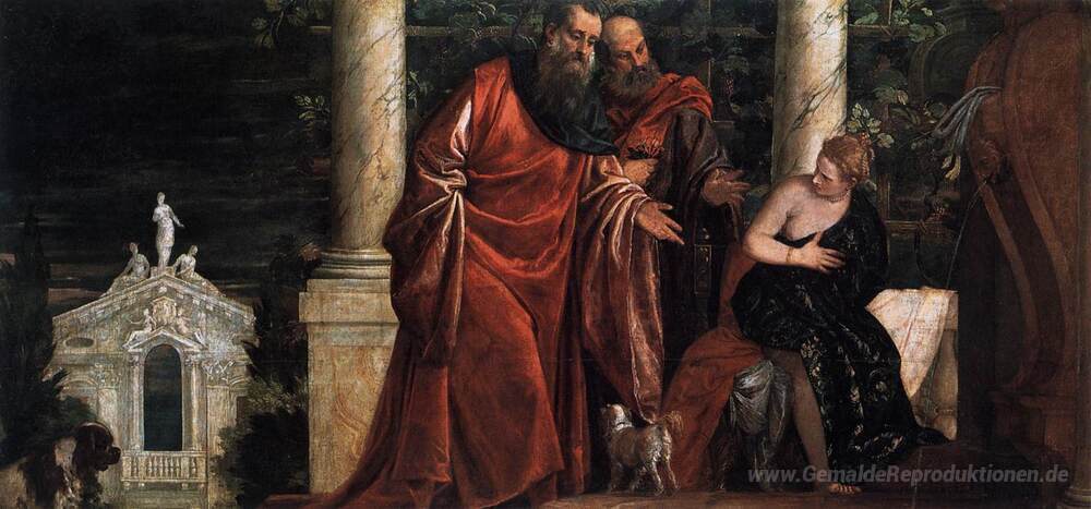 Wir bieten Ihnen eine handgefertigte Reproduktion auf Leinwand des berühmten Kunstwerks 'Susanna und die Ältesten' von Paolo Veronese, aus dem Reproduktionsmuseum.