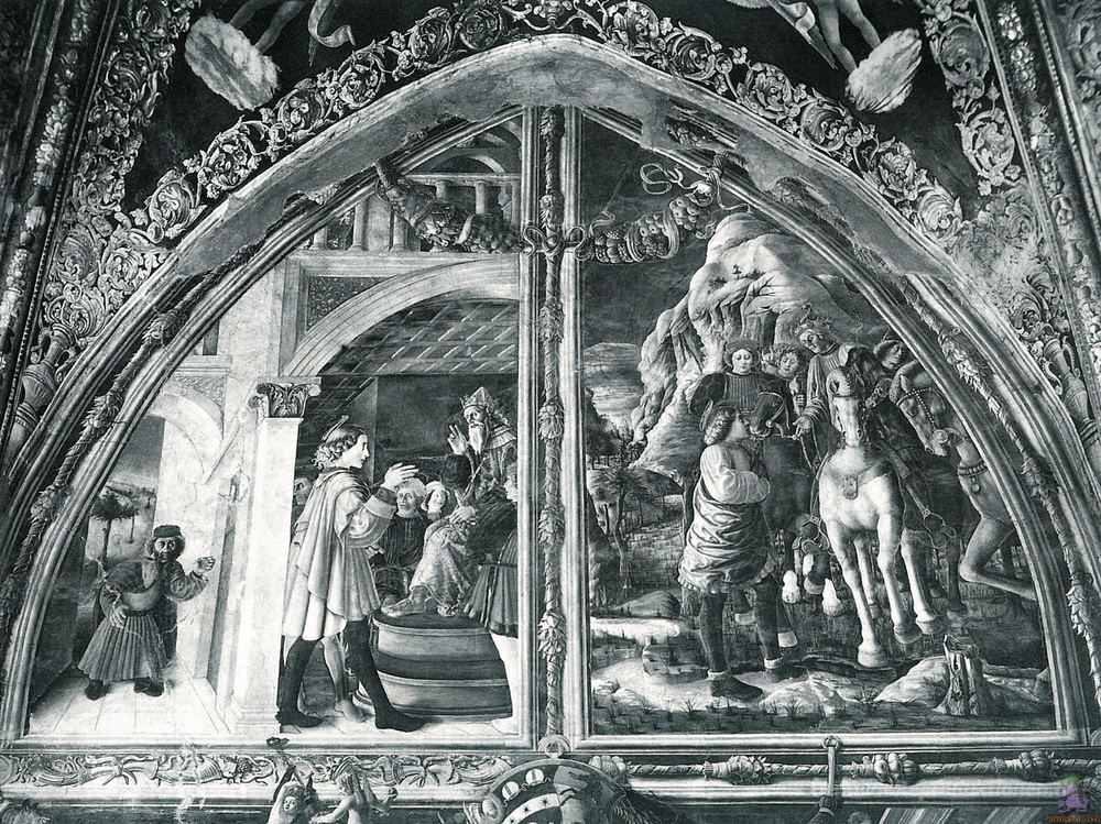 Wir bieten Ihnen eine handgefertigte Reproduktion auf Leinwand des berühmten Kunstwerks 'Szenen aus dem Leben der St.Christopher' von Andrea Mantegna, aus dem Reproduktionsmuseum.