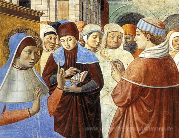 Wir bieten Ihnen eine handgefertigte Reproduktion auf Leinwand des berühmten Kunstwerks 'Szenen mit St. Ambrose (Detail)' von Benozzo Gozzoli, aus dem Reproduktionsmuseum.