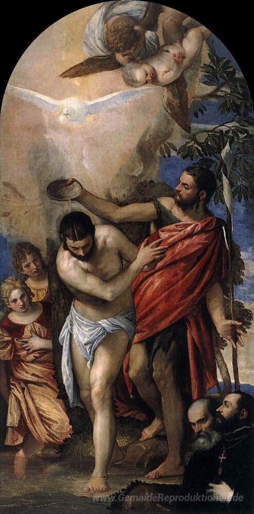 Wir bieten Ihnen eine handgefertigte Reproduktion auf Leinwand des berühmten Kunstwerks 'Taufe Christi' von Paolo Veronese, aus dem Reproduktionsmuseum.