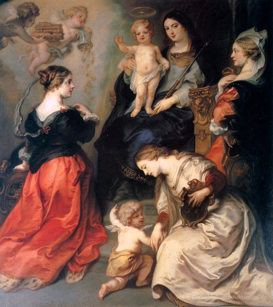 Wir bieten Ihnen eine handgefertigte Reproduktion auf Leinwand des berühmten Kunstwerks 'Theo Flandern und Brabant zu Ehren Maria' von Theodoor van Thulden, aus dem Reproduktionsmuseum.