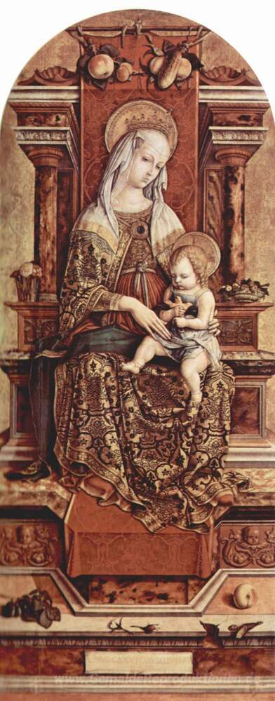 Willkommen auf unserer E-Commerce-Website für exquisite Ölgemälde, wo Kunstwerke lebendig werden und Ihre Räume bereichern. Eines unserer herausragenden Stücke ist Thronende Maria, ein Meisterwerk des renommierten Künstlers Carlo Crivelli. Crivelli, bekannt für seine außergewöhnliche Detailgenauigkeit und seine Fähigkeit, Emotionen auf die Leinwand zu bringen, verbindet in diesem Kunstwerk Elemente der gotischen Tradition mit einer einzigartigen Farbpalette, die insgesamt eine harmonische und spirituelle Atmosphäre schafft.