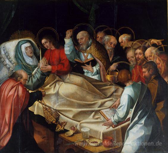 Wir bieten Ihnen eine handgefertigte Reproduktion auf Leinwand des berühmten Kunstwerks 'Trânsito da Virgem' von Cristovao de Figueiredo, aus dem Reproduktionsmuseum.