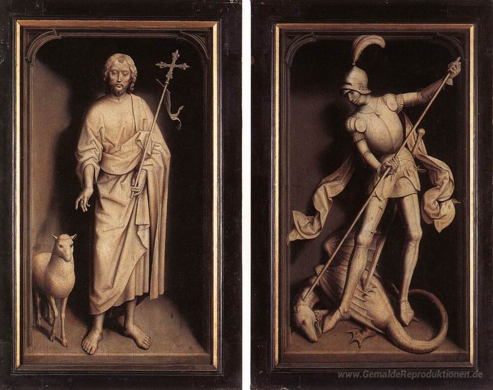 Wir bieten Ihnen eine handgefertigte Reproduktion auf Leinwand des berühmten Kunstwerks 'Triptychon der Familie Moreel (geschlossen)' von Hans Memling, aus dem Reproduktionsmuseum.