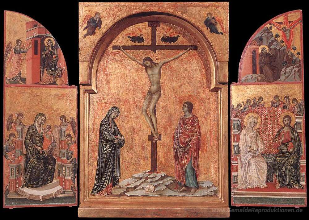 Wir bieten Ihnen eine handgefertigte Reproduktion auf Leinwand des berühmten Kunstwerks 'Triptychon' von Duccio, aus dem Reproduktionsmuseum.