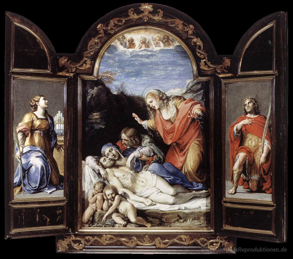 Wir bieten Ihnen eine handgefertigte Reproduktion auf Leinwand des berühmten Kunstwerks 'Triptychon' von Annibale Carracci, aus dem Reproduktionsmuseum.