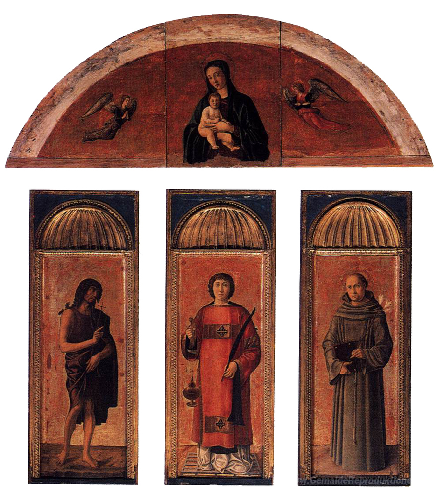 Wir bieten Ihnen eine handgefertigte Reproduktion auf Leinwand des berühmten Kunstwerks 'Triptychon von St Lawrence' von Jacopo Bellini, aus dem Reproduktionsmuseum.