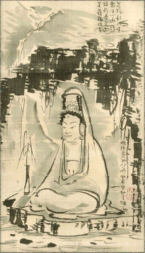 Wir bieten Ihnen eine handgefertigte Reproduktion auf Leinwand des berühmten Kunstwerks 'Unbekannter Titel' von Sengai, aus dem Reproduktionsmuseum.