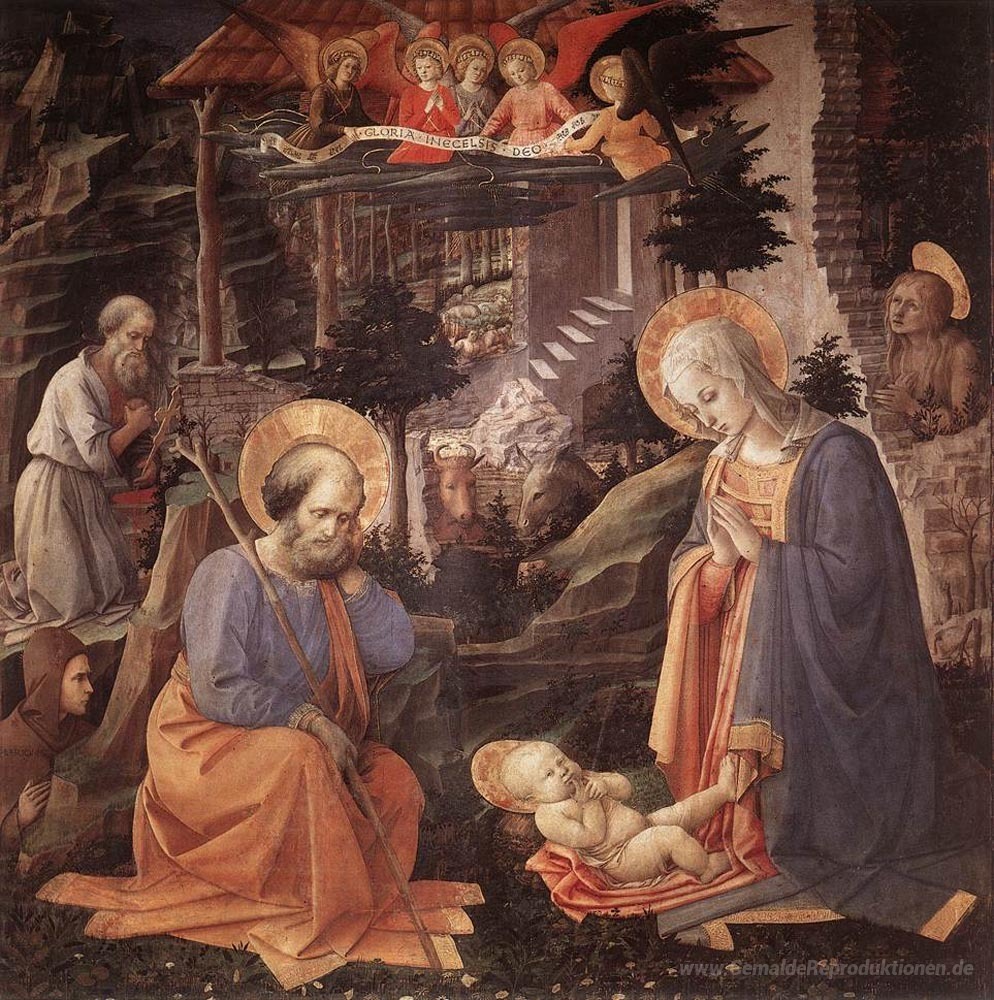 Wir bieten Ihnen eine handgefertigte Reproduktion auf Leinwand des berühmten Kunstwerks 'Verehrung des Kindes mit Heiligen' von Filippo Lippi, aus dem Reproduktionsmuseum.