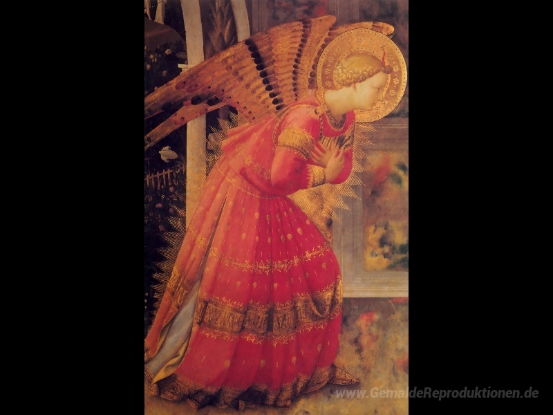 Wir bieten Ihnen eine handgefertigte Reproduktion auf Leinwand des berühmten Kunstwerks 'Verkündigung (Detail)' von Fra Angelico, aus dem Reproduktionsmuseum.