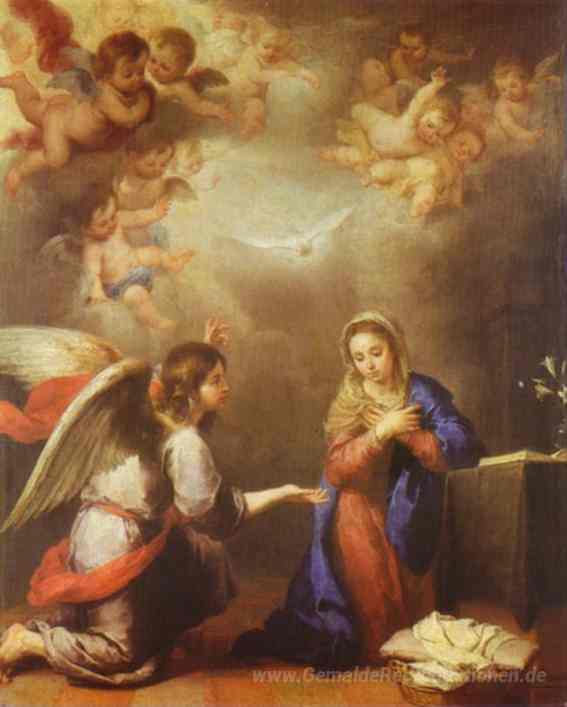 Wir bieten Ihnen eine handgefertigte Reproduktion auf Leinwand des berühmten Kunstwerks 'Verkündigung' von Bartolome Esteban Murillo, aus dem Reproduktionsmuseum.