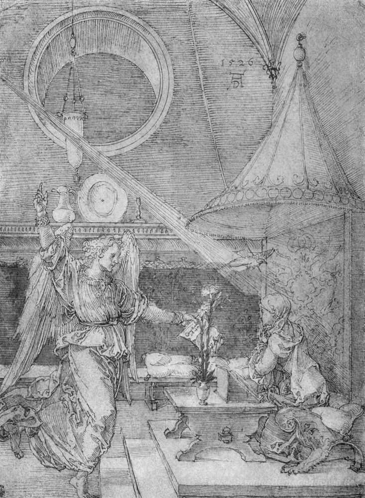 Wir bieten Ihnen eine handgefertigte Reproduktion auf Leinwand des berühmten Kunstwerks 'Verkündigung' von Albrecht Durer, aus dem Reproduktionsmuseum.