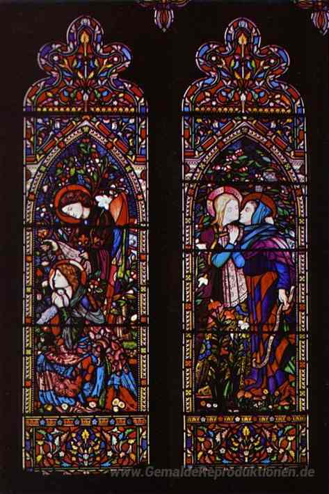 Wir bieten Ihnen eine handgefertigte Reproduktion auf Leinwand des berühmten Kunstwerks 'Verkündigung' von Edward Burne-Jones, aus dem Reproduktionsmuseum.