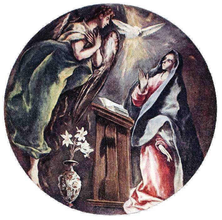 Wir bieten Ihnen eine handgefertigte Reproduktion auf Leinwand des berühmten Kunstwerks 'Verkündigung' von El Greco, aus dem Reproduktionsmuseum.