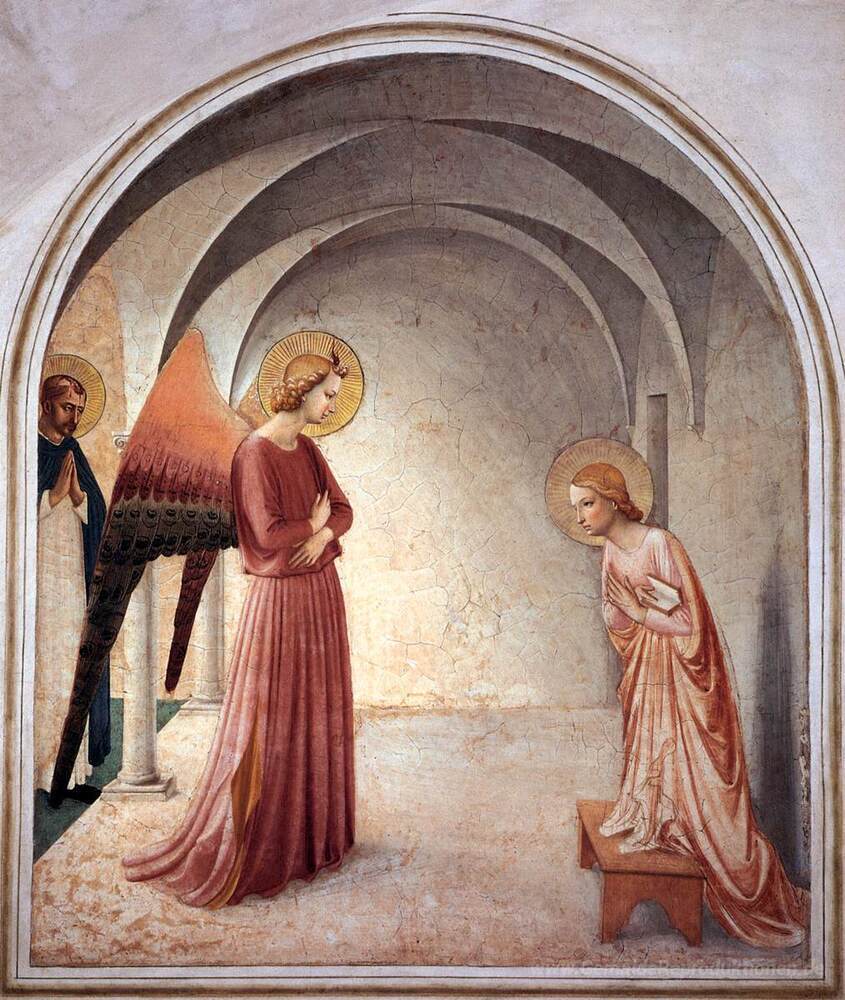 Wir bieten Ihnen eine handgefertigte Reproduktion auf Leinwand des berühmten Kunstwerks 'Verkündigung' von Fra Angelico, aus dem Reproduktionsmuseum.