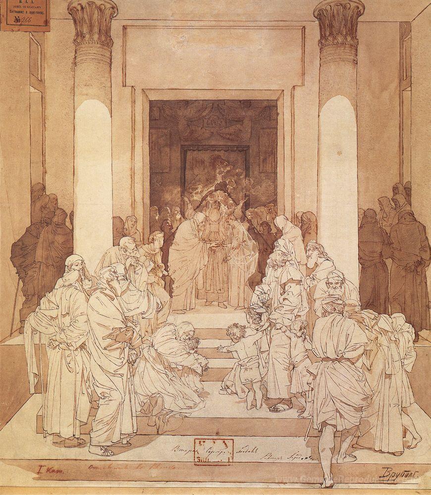 Ölgemälde sind nicht nur ein Ausdruck künstlerischer Kreativität, sondern auch ein Fenster in die Seele des Künstlers. Mit viel Liebe zum Detail und meisterhafter Technik bringt der Künstler Mikhail Vrubel in seinem Werk „Verlobung von Maria und Josef“ eine harmonische Verbindung von Licht und Schatten zum Leben. Sein einzigartiger Stil, geprägt von Symbolismus und Farbintensität, offenbart die tiefe emotionale Resonanz der dargestellten Szenen.
