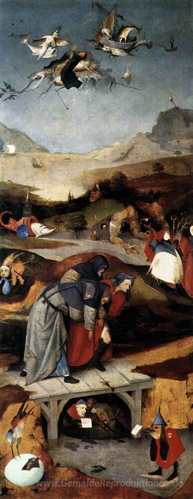 Wir bieten Ihnen eine handgefertigte Reproduktion auf Leinwand des berühmten Kunstwerks 'Versuchung des heiligen Antonius' von Hieronymus Bosch, aus dem Reproduktionsmuseum.