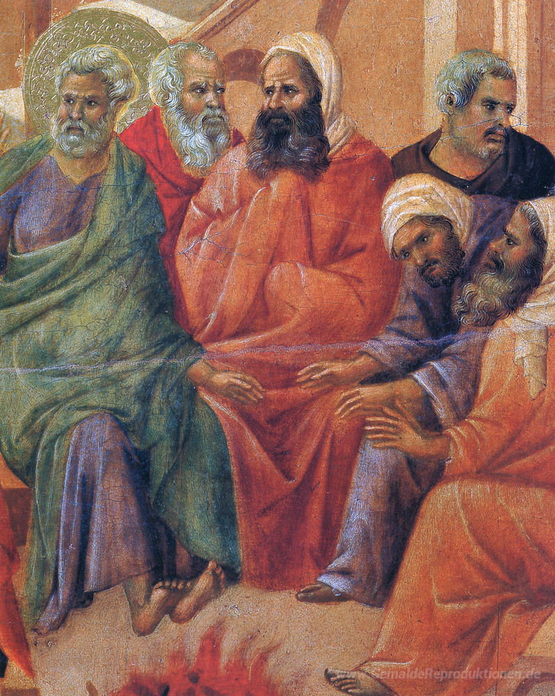 Wir bieten Ihnen eine handgefertigte Reproduktion auf Leinwand des berühmten Kunstwerks 'Verzicht auf Peter (Fragment)' von Duccio, aus dem Reproduktionsmuseum.