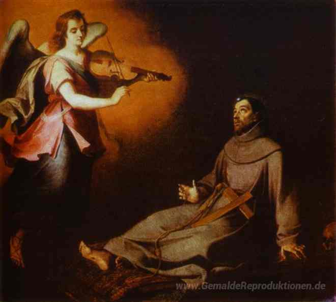 Wir bieten Ihnen eine handgefertigte Reproduktion auf Leinwand des berühmten Kunstwerks 'Vision, St. Francis' von Bartolome Esteban Murillo, aus dem Reproduktionsmuseum.