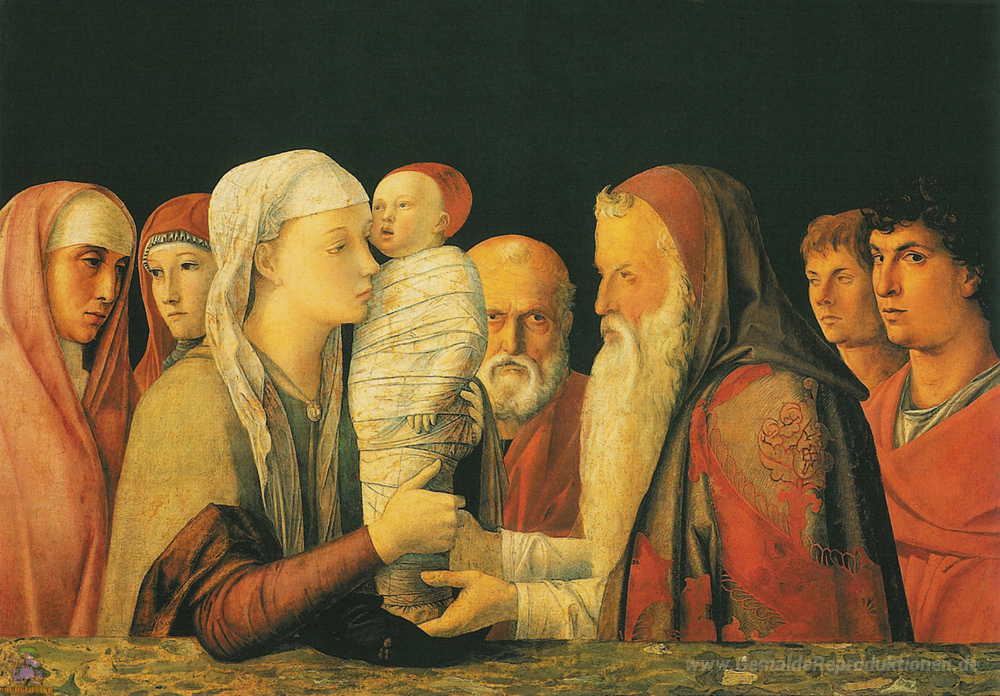 Wir bieten Ihnen eine handgefertigte Reproduktion auf Leinwand des berühmten Kunstwerks 'Vorstellung im Tempel' von Andrea Mantegna, aus dem Reproduktionsmuseum.