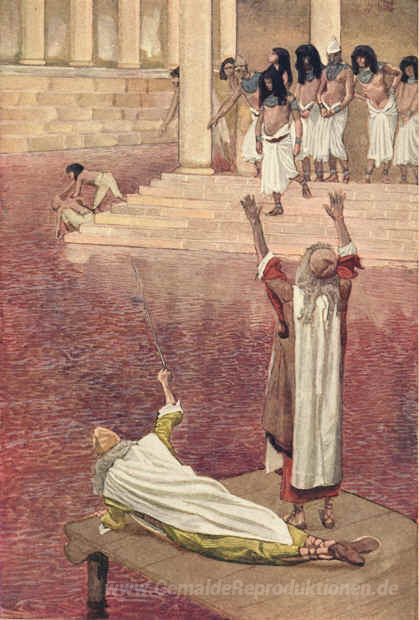 Wir bieten Ihnen eine handgefertigte Reproduktion auf Leinwand des berühmten Kunstwerks 'Wasser wird in Blut verwandelt' von James Tissot, aus dem Reproduktionsmuseum.