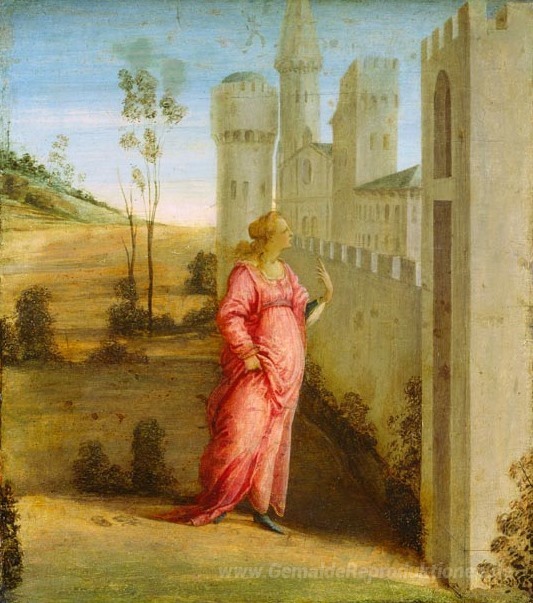 Wir bieten Ihnen eine handgefertigte Reproduktion auf Leinwand des berühmten Kunstwerks 'Workshop von Esther am Palace Gate' von Sandro Botticelli, aus dem Reproduktionsmuseum.
