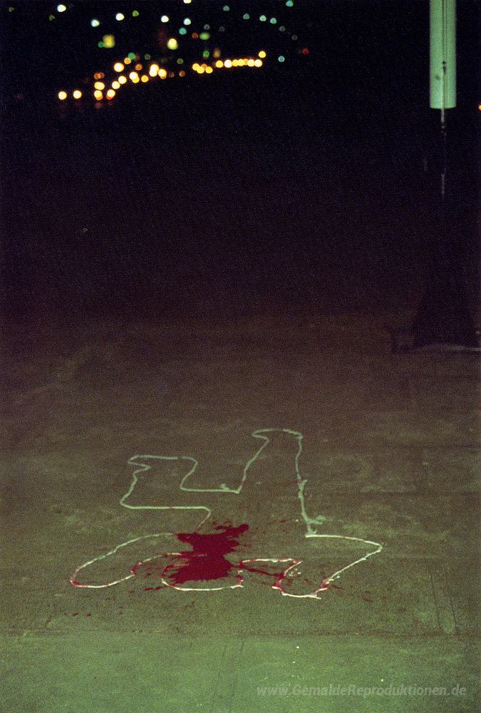 Wir bieten Ihnen eine handgefertigte Reproduktion auf Leinwand des berühmten Kunstwerks 'Bild Massenmord' von Richard Hambleton, aus dem Reproduktionsmuseum.