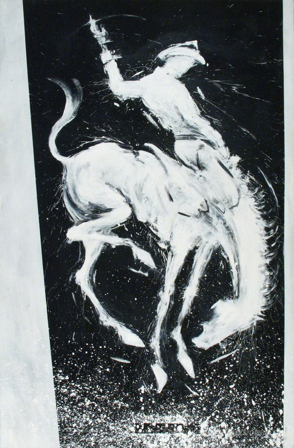 Wir bieten Ihnen eine handgefertigte Reproduktion auf Leinwand des berühmten Kunstwerks 'Rodeo' von Richard Hambleton, aus dem Reproduktionsmuseum.