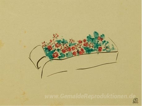 Wir bieten Ihnen eine handgefertigte Reproduktion auf Leinwand des berühmten Kunstwerks 'Box of Flowers' von Sanyu, aus dem Reproduktionsmuseum.