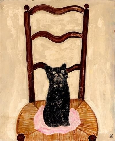Wir bieten Ihnen eine handgefertigte Reproduktion auf Leinwand des berühmten Kunstwerks 'Die Katze auf dem Stuhl' von Sanyu, aus dem Reproduktionsmuseum.