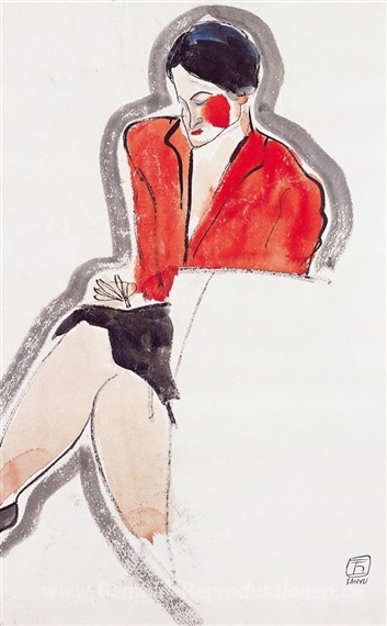 Wir bieten Ihnen eine handgefertigte Reproduktion auf Leinwand des berühmten Kunstwerks 'Ein weiblicher Maler' von Sanyu, aus dem Reproduktionsmuseum.