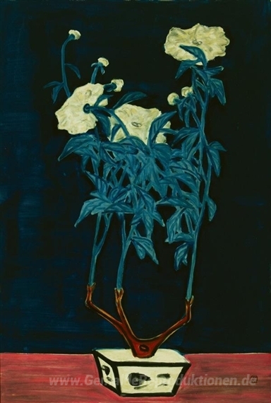 Wir bieten Ihnen eine handgefertigte Reproduktion auf Leinwand des berühmten Kunstwerks 'Eingemachte Blumen in einem blauen und weißen Jardiniere' von Sanyu, aus dem Reproduktionsmuseum.
