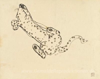 Wir bieten Ihnen eine handgefertigte Reproduktion auf Leinwand des berühmten Kunstwerks 'Leopard' von Sanyu, aus dem Reproduktionsmuseum.