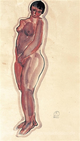 Wir bieten Ihnen eine handgefertigte Reproduktion auf Leinwand des berühmten Kunstwerks 'Nackt' von Sanyu, aus dem Reproduktionsmuseum.