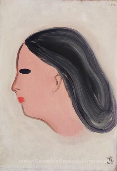 Wir bieten Ihnen eine handgefertigte Reproduktion auf Leinwand des berühmten Kunstwerks 'Porträt' von Sanyu, aus dem Reproduktionsmuseum.