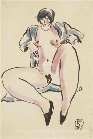 Wir bieten Ihnen eine handgefertigte Reproduktion auf Leinwand des berühmten Kunstwerks 'Sitzender Akt in Blau' von Sanyu, aus dem Reproduktionsmuseum.