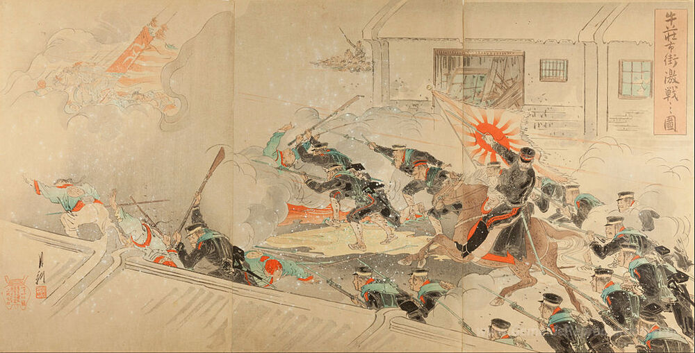 Wir bieten Ihnen eine handgefertigte Reproduktion auf Leinwand des berühmten Kunstwerks 'Bild von strenge Kampf auf den Straßen von Gyuso' von Ogata Gekko, aus dem Reproduktionsmuseum.