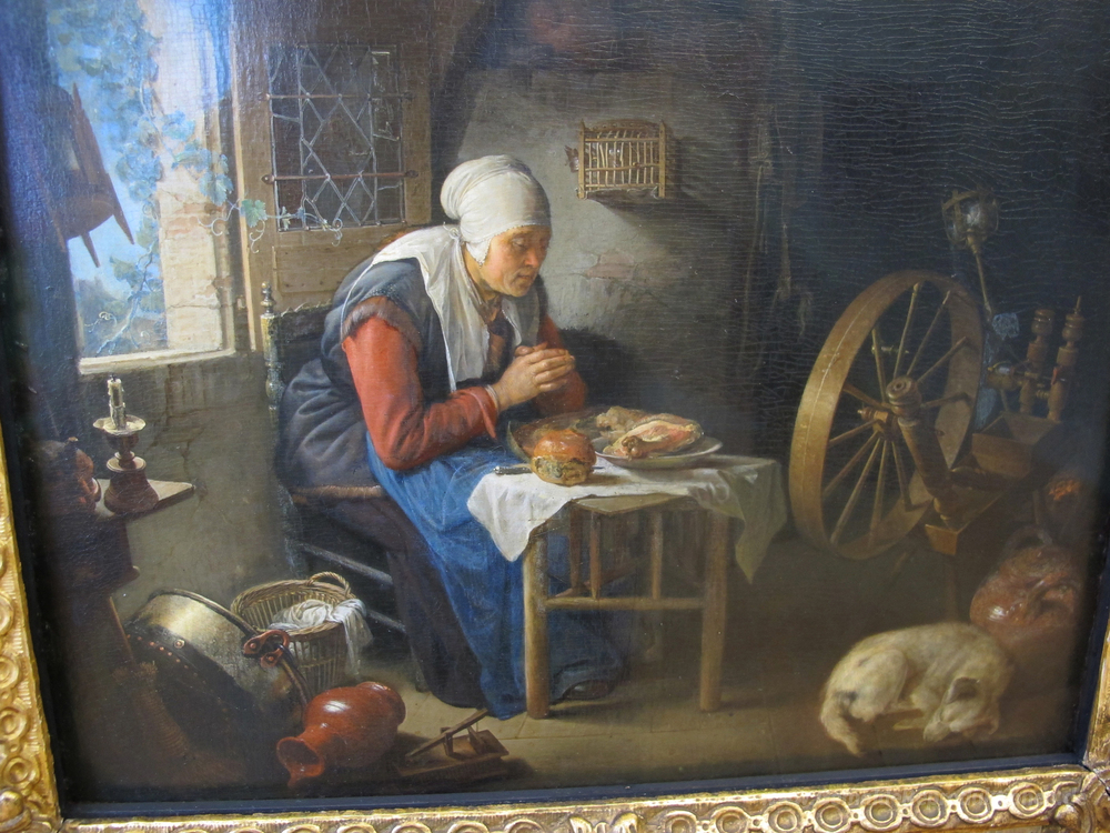 Wir bieten Ihnen eine handgefertigte Reproduktion auf Leinwand des berühmten Kunstwerks 'Das Gebet des Spinners' von Gerrit Dou, aus dem Reproduktionsmuseum.