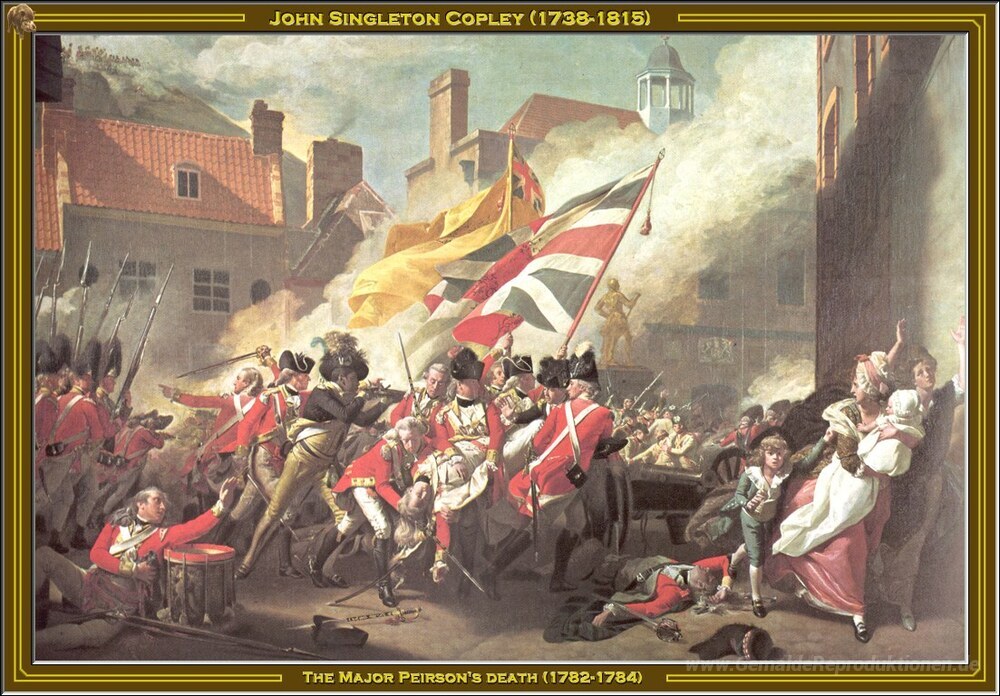 Wir bieten Ihnen eine handgefertigte Reproduktion auf Leinwand des berühmten Kunstwerks 'Die Haupt Peirson Tod' von John Singleton Copley, aus dem Reproduktionsmuseum.