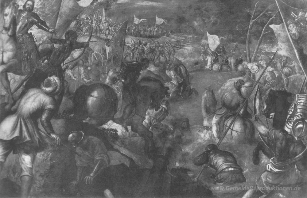Wir bieten Ihnen eine handgefertigte Reproduktion auf Leinwand des berühmten Kunstwerks 'Francesco II Gonzaga gegen Charles VIII von Frankreich 1495 im K' von Tintoretto, aus dem Reproduktionsmuseum.