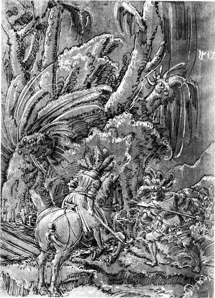 Wir bieten Ihnen eine handgefertigte Reproduktion auf Leinwand des berühmten Kunstwerks 'Kampf zwischen Ritter und Söldner' von Albrecht Altdorfer, aus dem Reproduktionsmuseum.