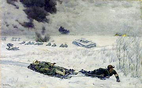 Wir bieten Ihnen eine handgefertigte Reproduktion auf Leinwand des berühmten Kunstwerks 'Krankenschwestern' von Konstantin Yuon, aus dem Reproduktionsmuseum.