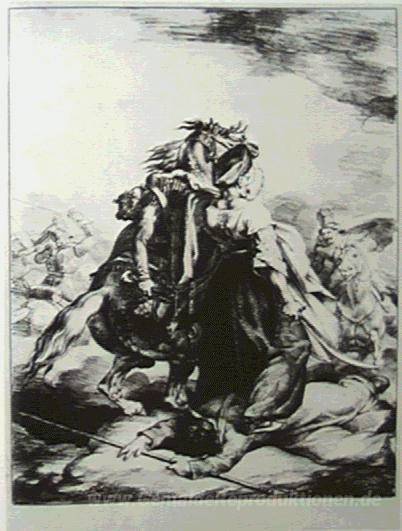 Wir bieten Ihnen eine handgefertigte Reproduktion auf Leinwand des berühmten Kunstwerks 'Mameluke verteidigen verwundet Trumpete' von Theodore Gericault, aus dem Reproduktionsmuseum.
