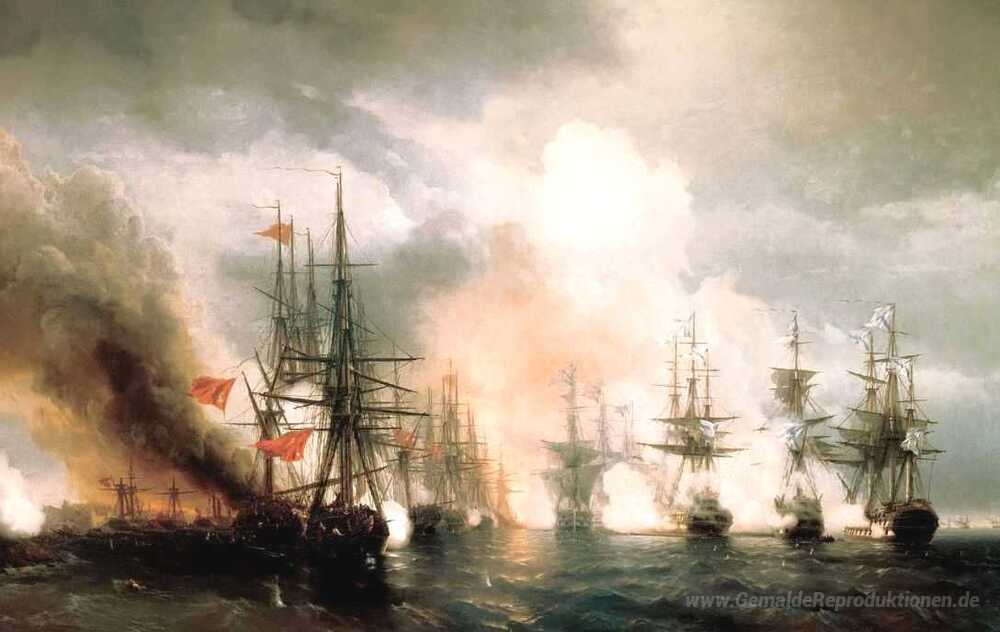 Die lebendige Ausgewogenheit und der dynamische Einsatz von Farben in der Russisch-Türkischen Seeschlacht erzeugen eine spürbare Atmosphäre von Spannung und Historie. Dieses Ölgemälde macht nicht nur durch seine eindrucksvolle Komposition jede Wand zum Blickfang, sondern bereichert auch die Raumgestaltung und inspiriert zu Gesprächen über Kunst und Geschichte. Lassen Sie sich von der Wirkung dieses Meisterwerks auf Ihr Zuhause verzaubern und entdecken Sie, wie es Ihre persönliche Atmosphäre harmonisch unterstützen kann.