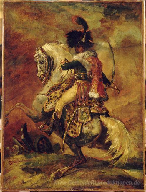 Die ausgeklügelte Technik Gericaults, geprägt von lebendigen Farben und kraftvollen Pinselstrichen, lässt das Kunstwerk in jedem Raum erstrahlen. Die kraftvolle Präsenz des Officers vermittelt Stärke und Ernsthaftigkeit, wodurch die Atmosphäre Ihres Wohn- oder Arbeitsbereichs maßgeblich beeinflusst wird. Durch die Integration eines solchen Meisterwerks schaffen Sie nicht nur einen Blickfang, sondern auch eine inspirierende Umgebung, die zum Nachdenken anregt und Gespräche fördert.