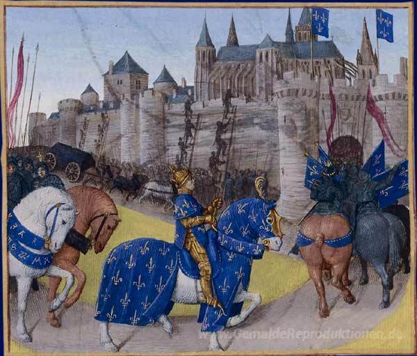 Wir bieten Ihnen eine handgefertigte Reproduktion auf Leinwand des berühmten Kunstwerks 'Taken in Tours 1189' von Jean Fouquet, aus dem Reproduktionsmuseum.