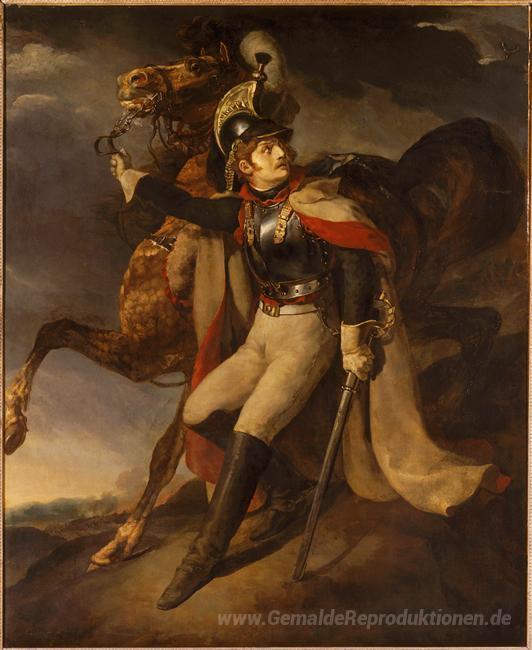 Wir bieten Ihnen eine handgefertigte Reproduktion auf Leinwand des berühmten Kunstwerks 'Verwundeter Kürassier' von Theodore Gericault, aus dem Reproduktionsmuseum.