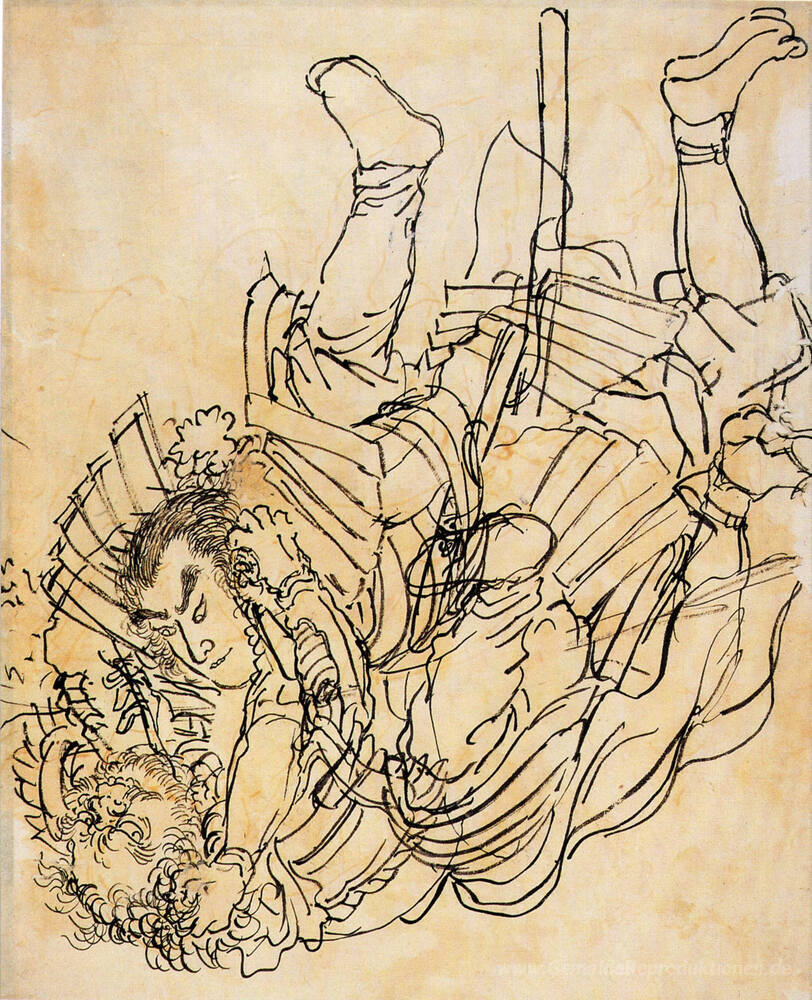 Wir bieten Ihnen eine handgefertigte Reproduktion auf Leinwand des berühmten Kunstwerks 'Zwei Gegner in Unterwasser-Kampf' von Utagawa Kuniyoshi, aus dem Reproduktionsmuseum.