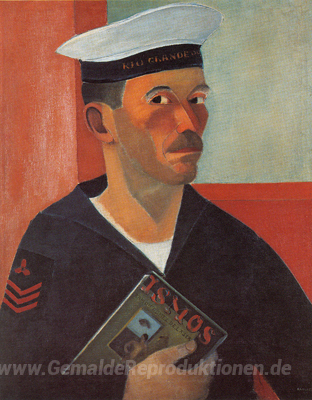 Wir bieten Ihnen eine handgefertigte Reproduktion auf Leinwand des berühmten Kunstwerks 'Auto-Retrato Como Marinheiro (Auto-vida)' von Jose Pancetti, aus dem Reproduktionsmuseum.